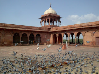 The Jama Masjid Complex (top); The flight of pigeons in Jama Masjid (bottom)