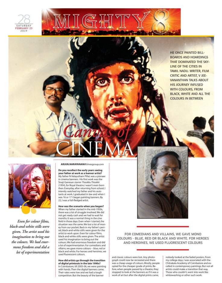I know every nook and corner of the city. From tea vendors to VIPs, I interact with everyone on a daily basis. The city and I are untied. I am a regular at several city-based events. I was also a part of an event to paint the walls of Coimbatore. I won a National award for my book on cinema Thirai seelai. My next book will be on my experiences as a banner artist, replete with anecdotes right from my father’s time. It will be my way to document the work we have put in.