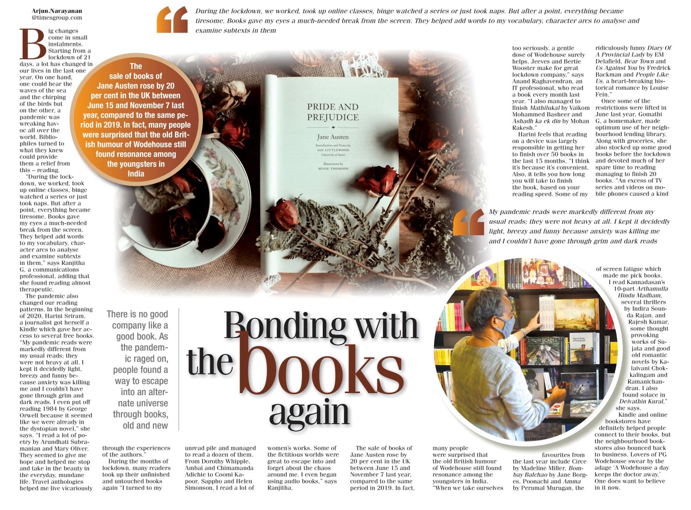 The sale of books of Jane Austen rose by 20 per cent in the UK between June 15 and November 7 last year, compared to the same period in 2019. In fact, many people were surprised that the old British humour of Wodehouse still found resonance among the youngsters in India. “At a time when we take ourselves too seriously, a gentle dose of Wodehouse surely helps. Jeeves and Bertie Wooster make for great lockdown company,” says Anand Raghavendran, an IT professional, who read a book every month last year. “I also managed to finish Mathilukal by Vaikom Mohammed Basheer and Ashadh ka ek din by Mohan Rakesh.”