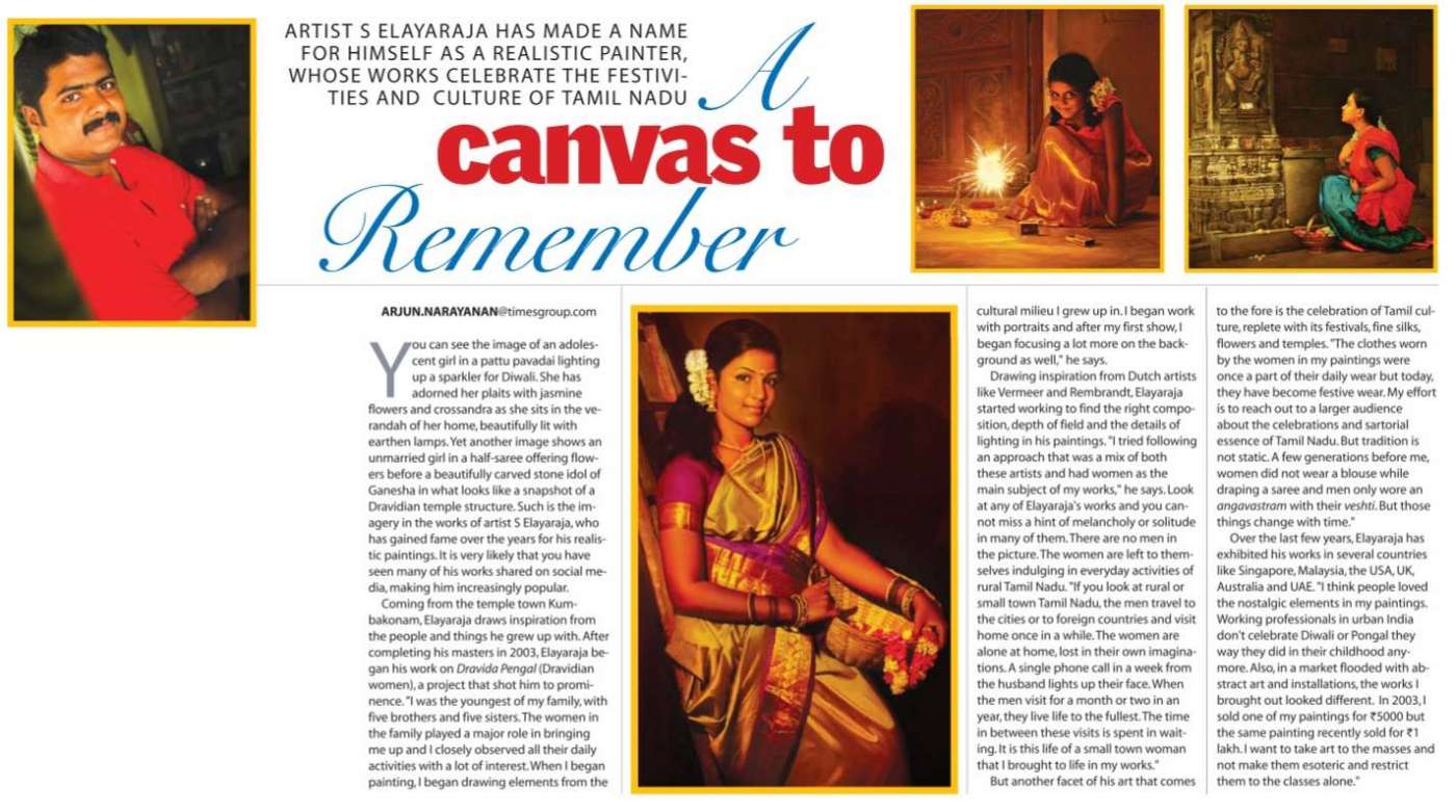 I had interviewed the artist S Elayaraja for a Diwali Special in The Times of India in 2015. Covid claimed yet another genius as he passed away today at the age of 42. The artist is no more. The art lives on….