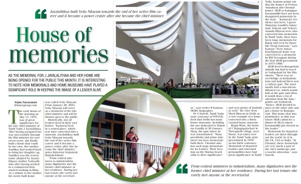 As the memorial for J Jayalalithaa and her home are being opened for the public this month, it is interesting to note how memorials and home museums have played a significant role in keeping the image of a leader alive