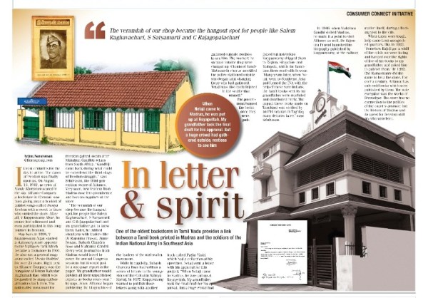 alliance Company, one of the oldest bookstores in Tamil Nadu, provides a link between a Tamil book printed in Madras and the soldiers of Subash Chandra Bose's Indian National Army in Southeast Asia